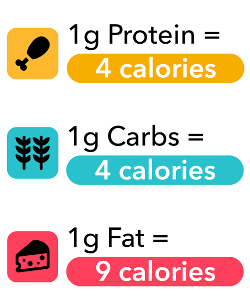 - Fat: 9 calories per gram
