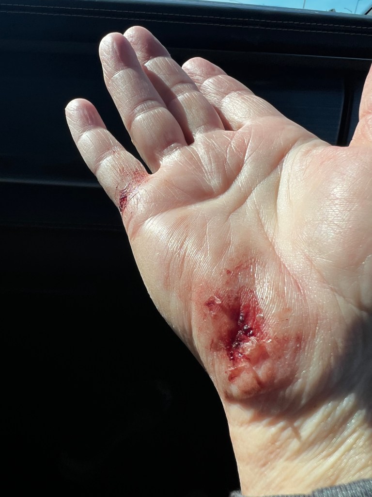 At the end of Mile 1, I stubbed my foot and took a very ungraceful tumble. Not a cute little trip—no, this was a full “ma’am, are you okay?” situation. I banged up my knee, hand, and arm, and for a brief moment considered whether crawling the remaining 12 miles was a viable strategy.